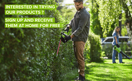 Test our tools for free, share your experience in a video and join a community of gardening and DIY enthusiasts.