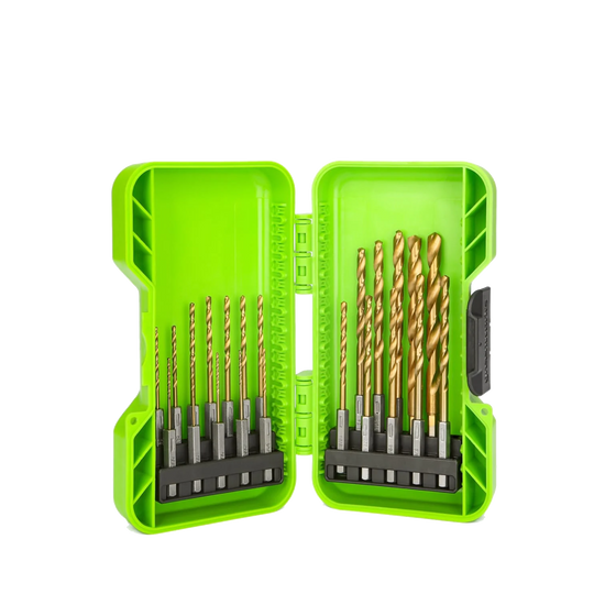 • 22-piece Titanium-coated HSS hexagonal drill bit set for durability