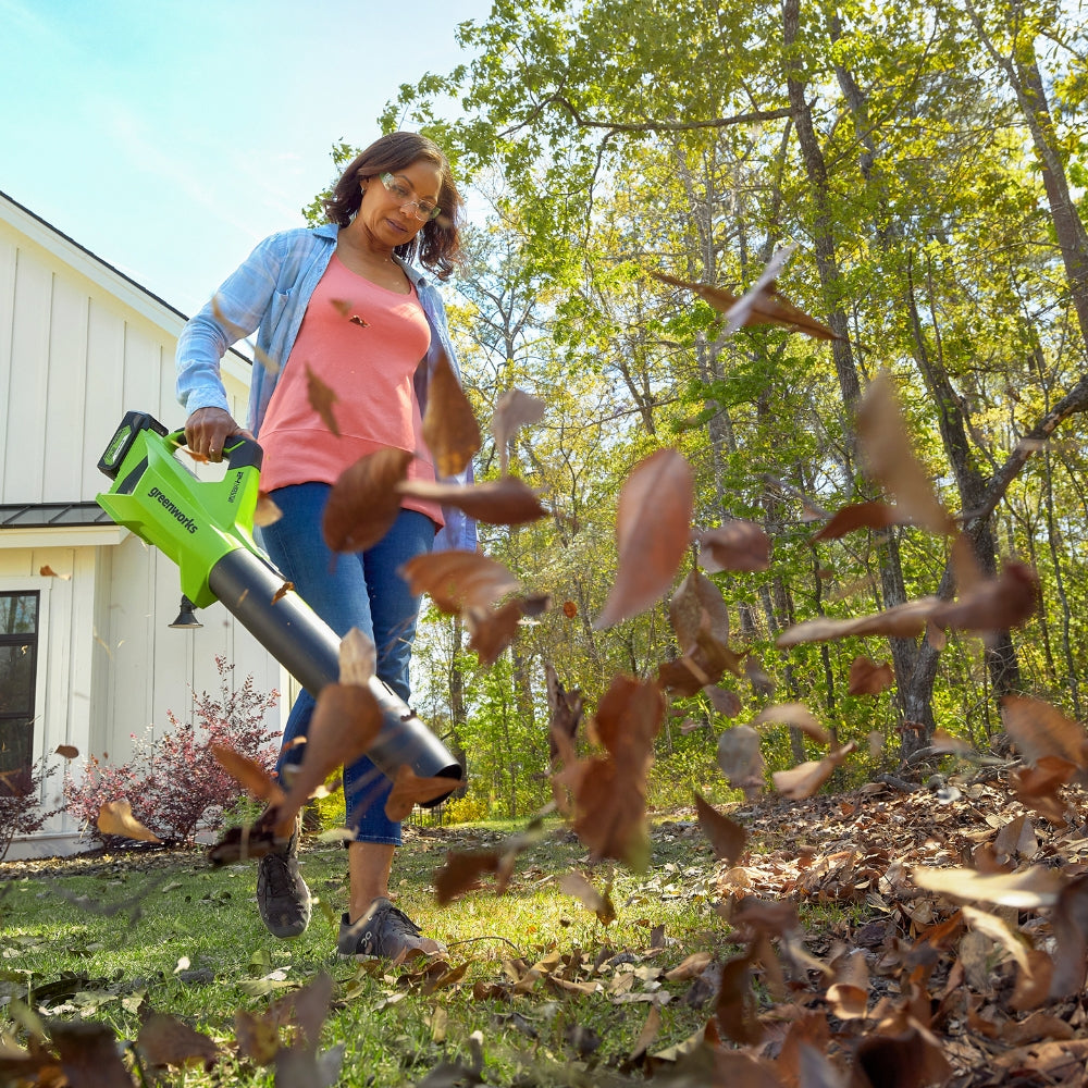 The Greenworks BL24L01-01 is a lightweight and powerful 24V leaf blower, ideal for clearing leaves and debris around your home and garden. Powered by an advanced 24V lithium-ion battery, it delivers strong performance with total cordless freedom. Simply insert the battery and start blowing.