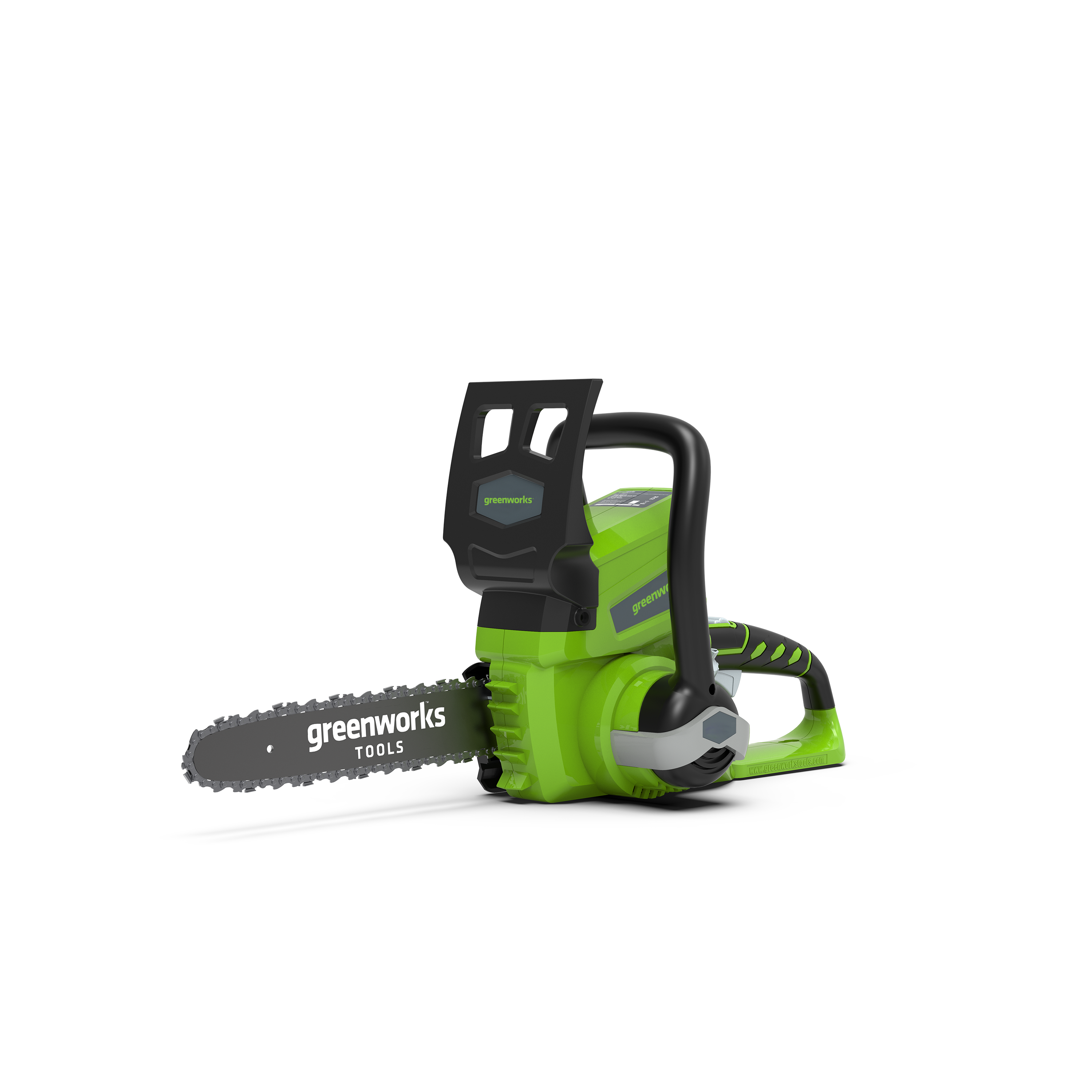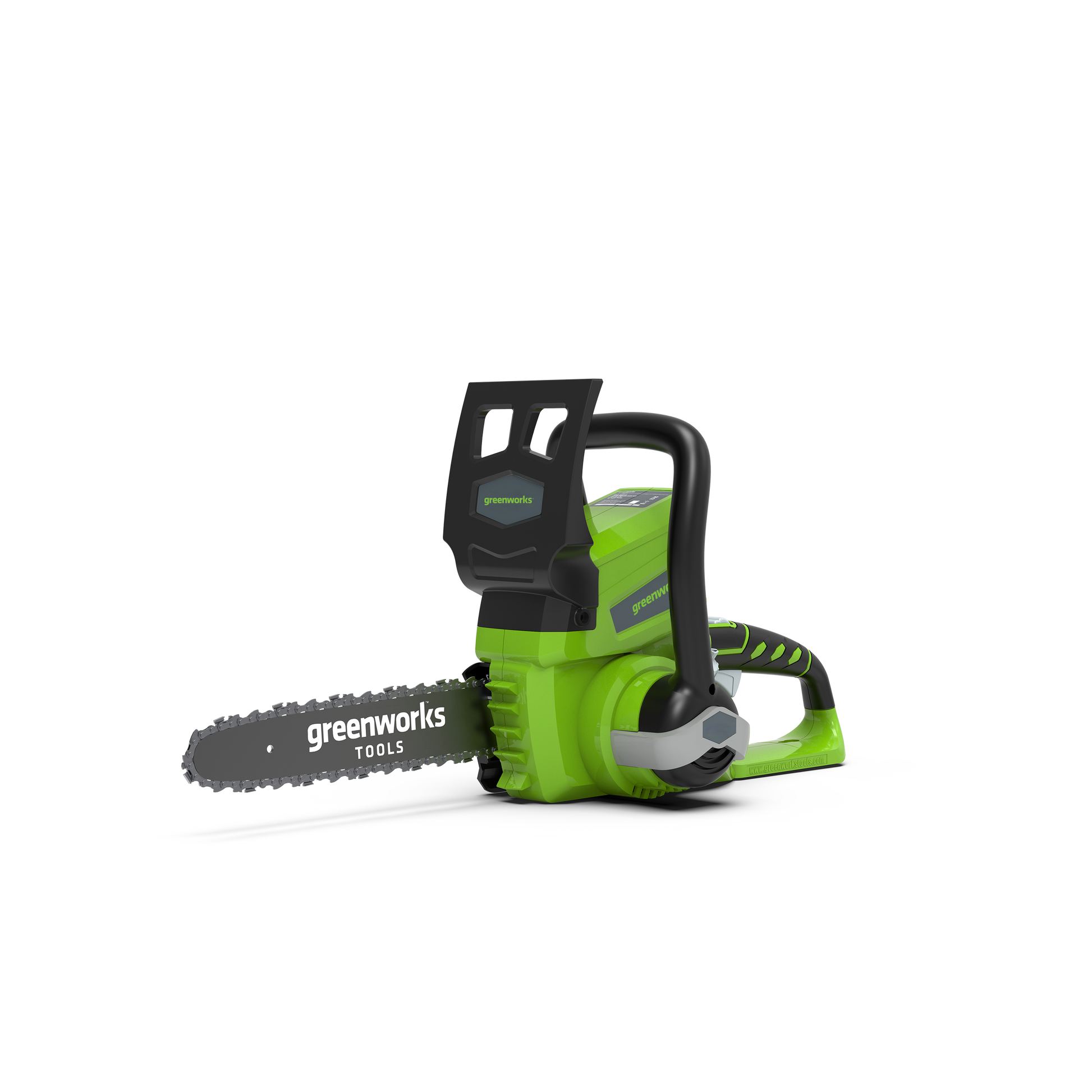 The Greenworks G24CS25 is a lightweight 24V chainsaw designed for home and DIY tasks. Powered by an advanced 24V lithium-ion battery, the chainsaw offers high performance despite its compact size. Convenience is guaranteed with no fuel or electric cables to contend with – simply insert the battery and you are ready to cut. With a 25 cm cutter bar and weighing just 2.6 kg, cutting logs for the fireplace has never been simpler.