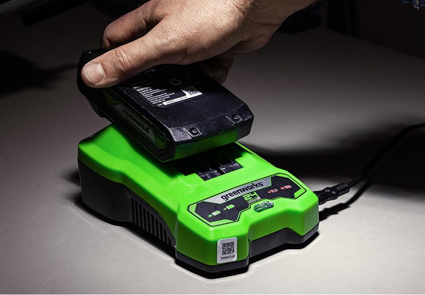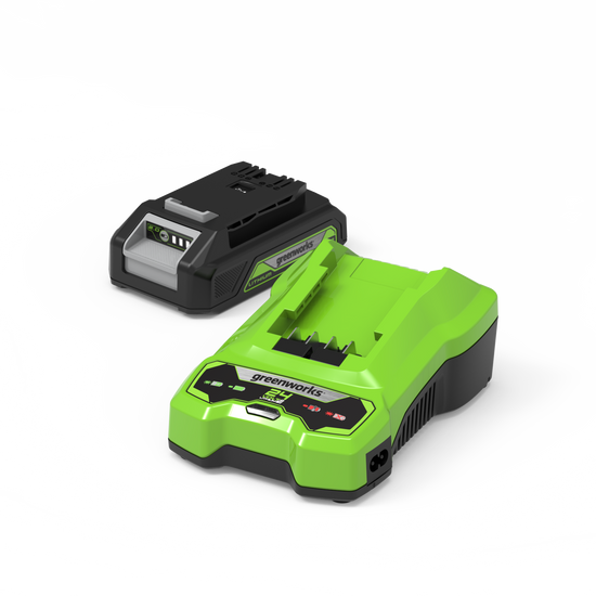 Greenworks batteries utilise the latest Lithium-Ion technology for optimum performance. Benefits include fast charging times, long runtimes and no self discharge. The Greenworks GSK24B2 24V 2Ah kit features a 24V 2Ah battery (G24B2) and fast charger (G24C). Compatible with all 24V Greenworks garden and power tools. Charging time for G24B2 = 60 minutes.