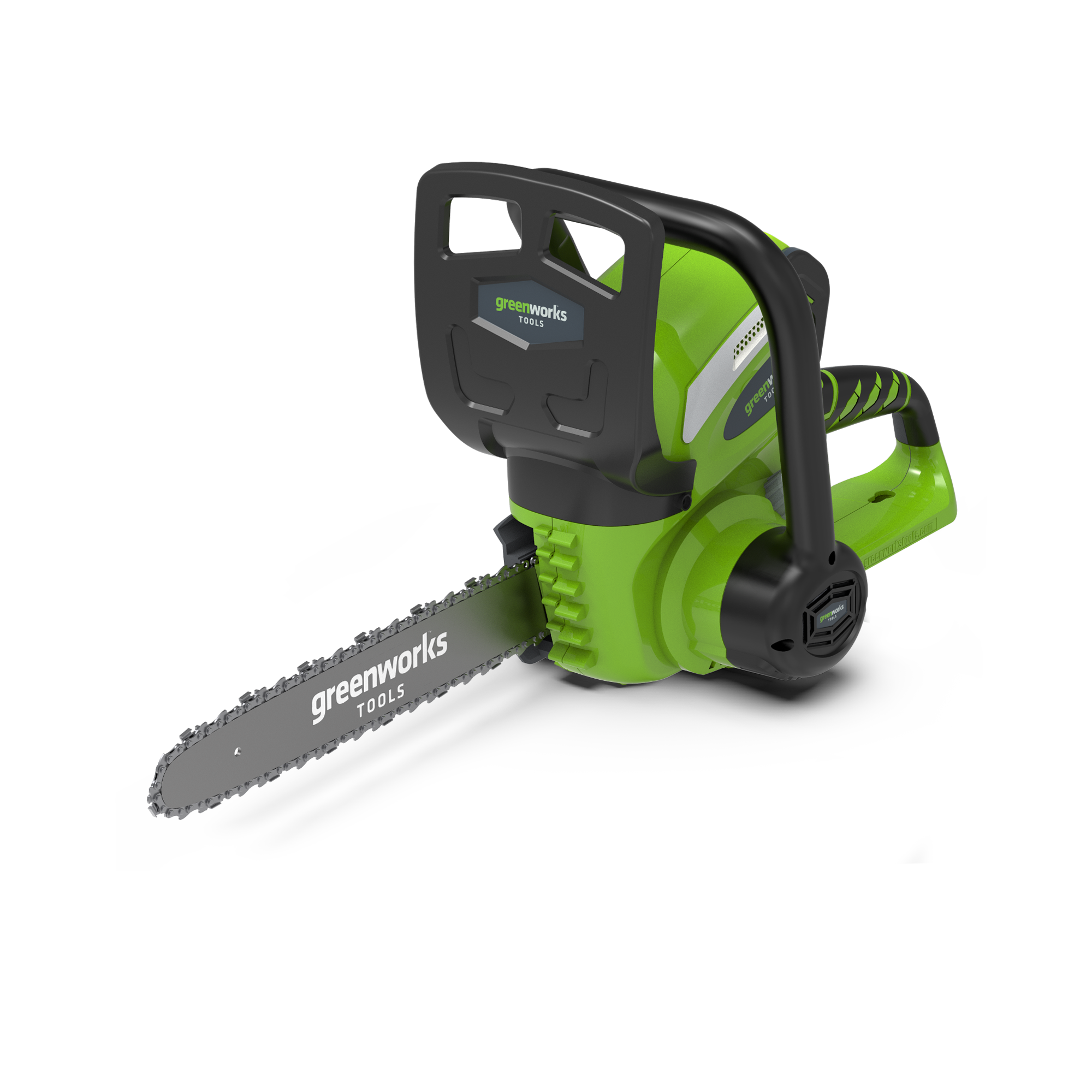 The Greenworks G40CS30 cordless chainsaw is perfectly suited for pruning and cutting firewood thanks to its low weight and compact design. Power comes from an advanced 40V lithium-ion battery which combines a compact design with powerful performance.