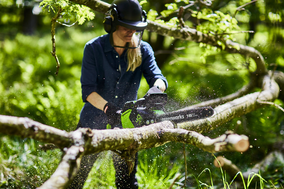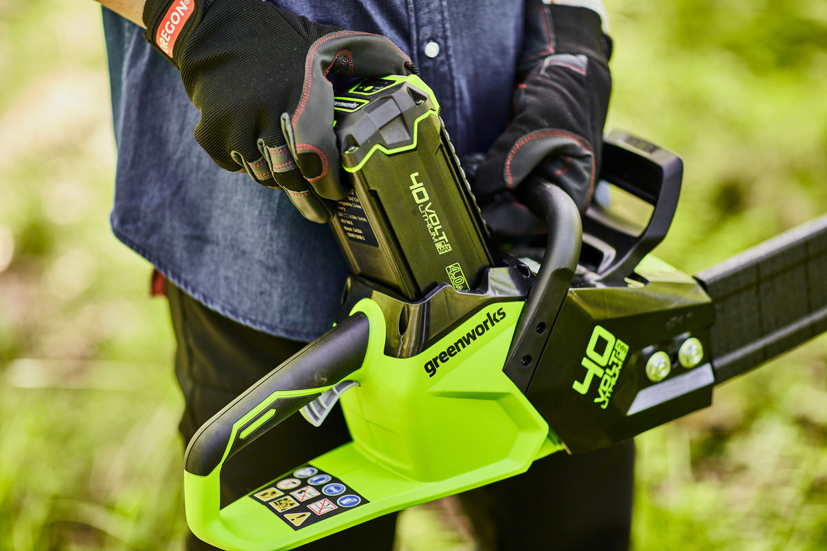 The Greenworks GD40CS18 is a powerful yet lightweight chainsaw with a 35cm cutting bar. Powered by an advanced 40V lithium-ion battery which combines a compact design with powerful performance, as part of the 40V family the battery can be used in any of the other tools available, offering total flexibility and convenience.