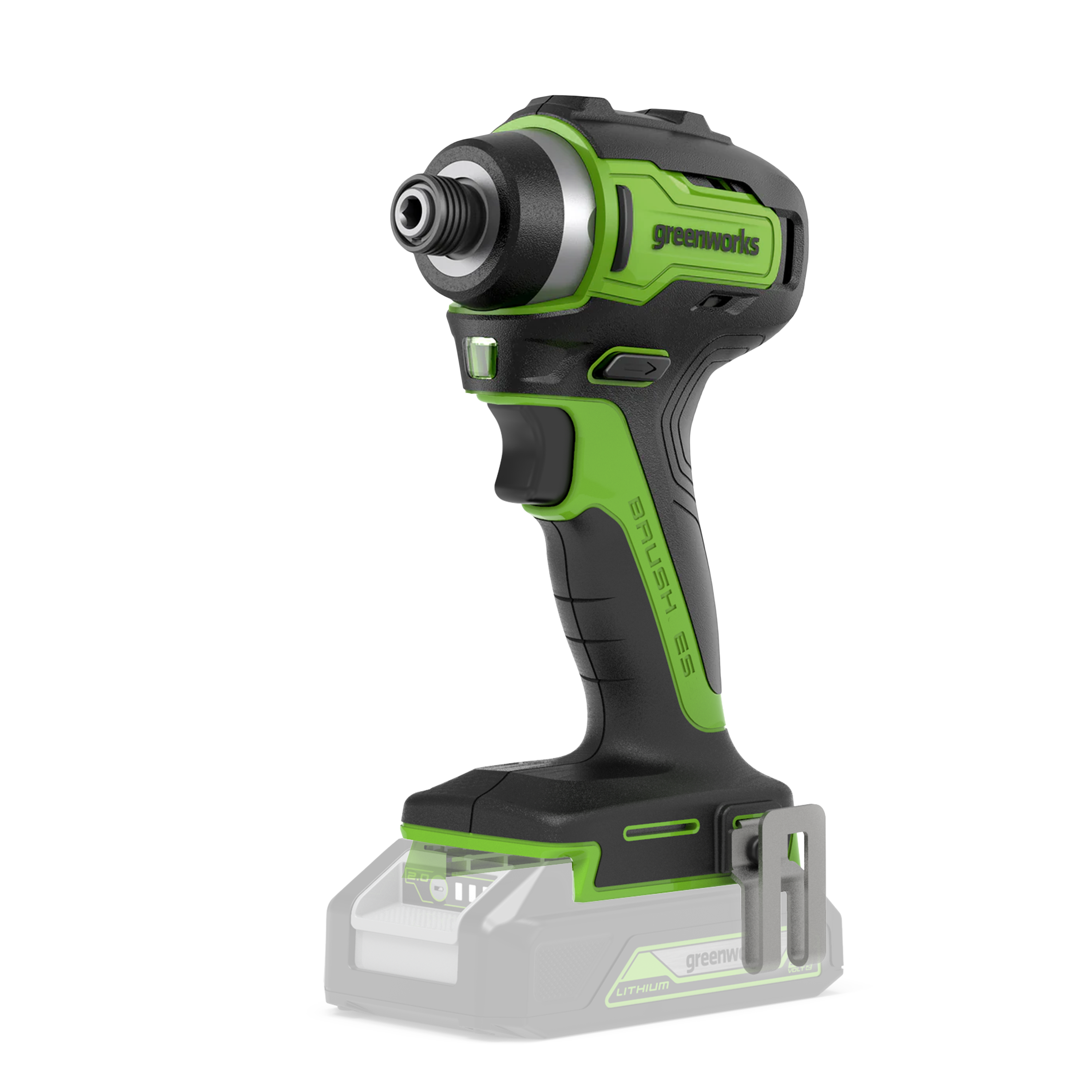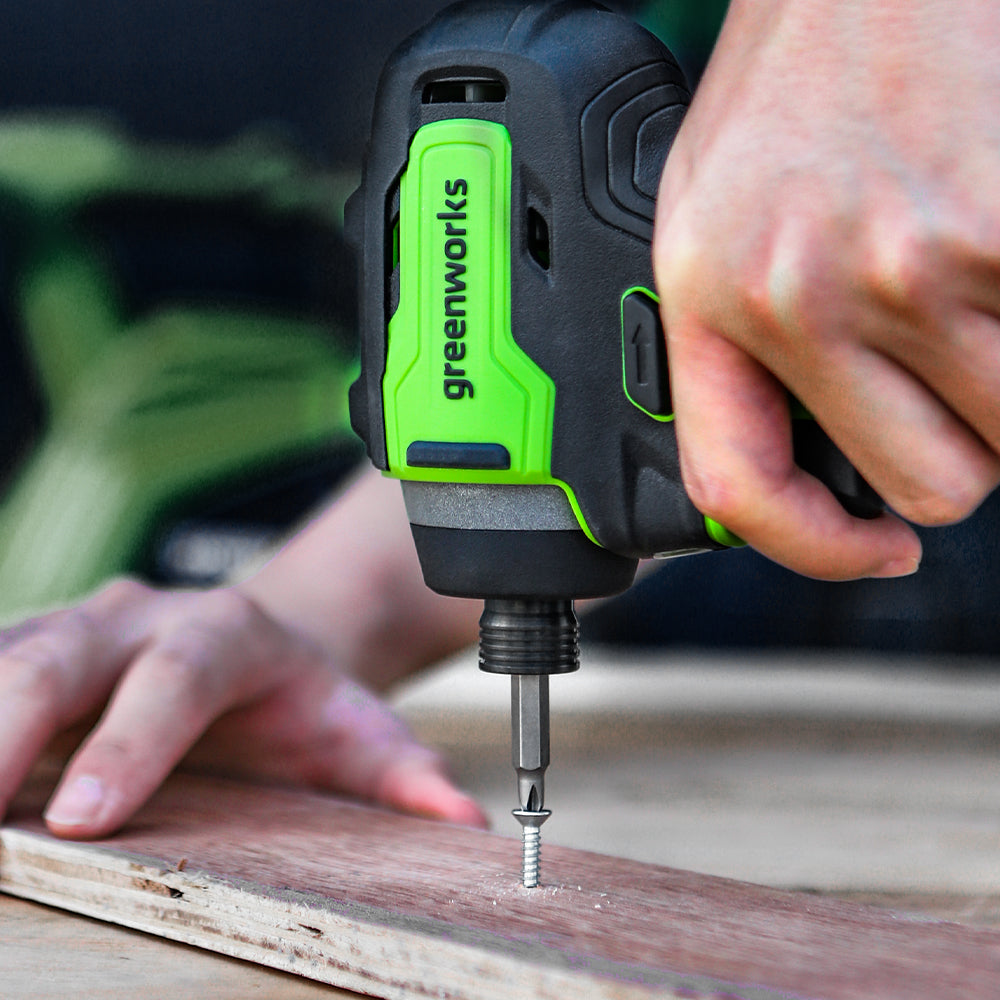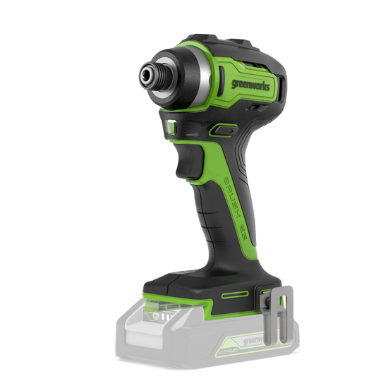 The Greenworks GD24ID220 is a robust, lightweight 24V impact driver designed for home and DIY tasks. Powered by an advanced 24V lithium-ion battery, the machine offers high performance despite its compact size. Convenience is guaranteed with no electric cables to contend with, simply insert the battery and work.
