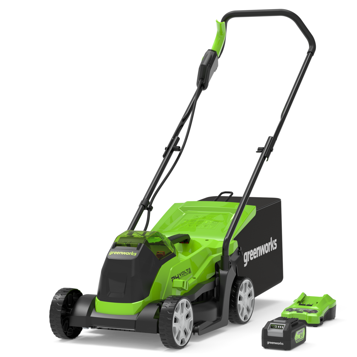 Start mowing instantly with the Greenworks 24V Lawn Mower’s intuitive push-button design—no cords to pull or petrol needed. Enjoy smooth, effortless operation every time. Ideal for quick, convenient lawn care with minimal effort.