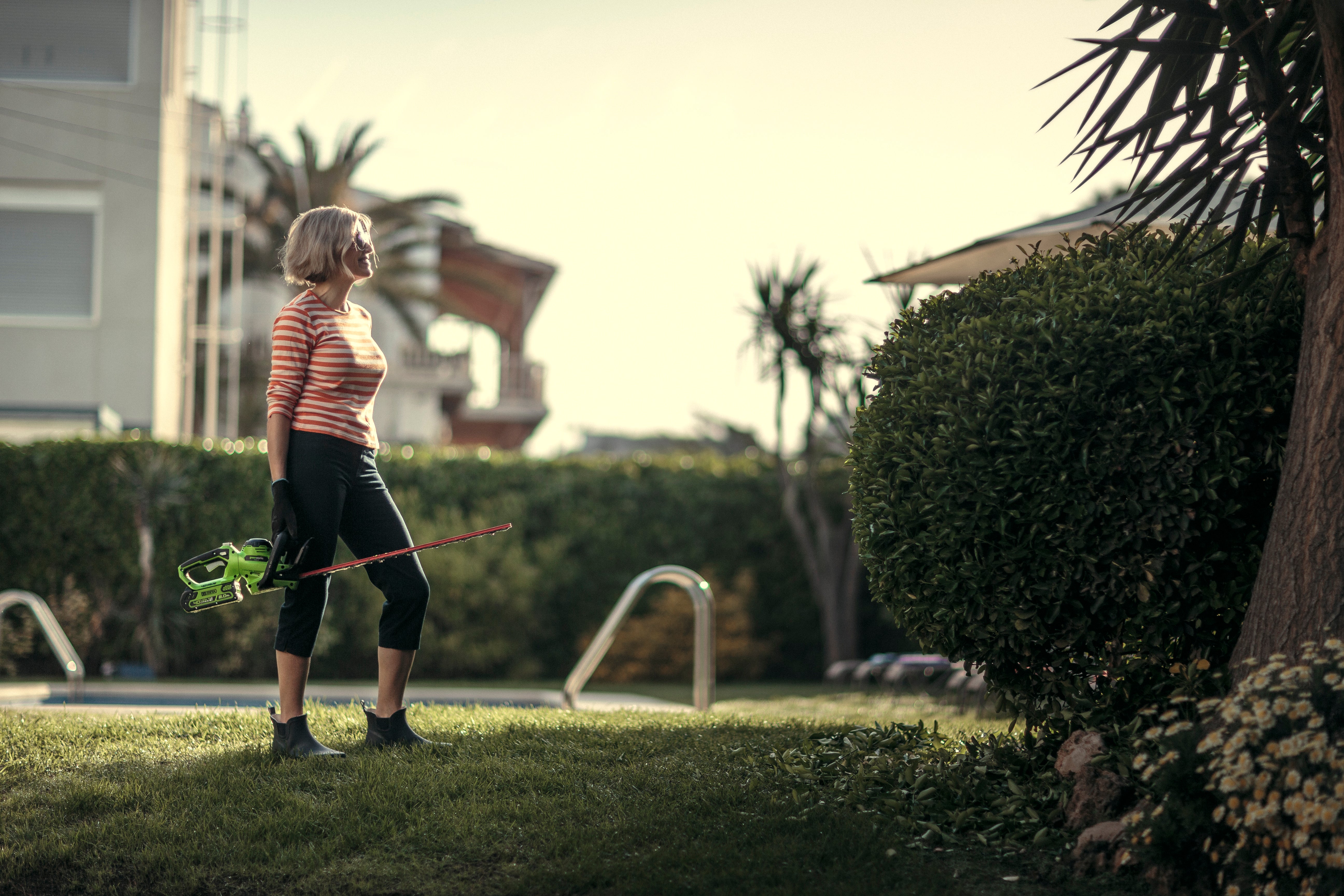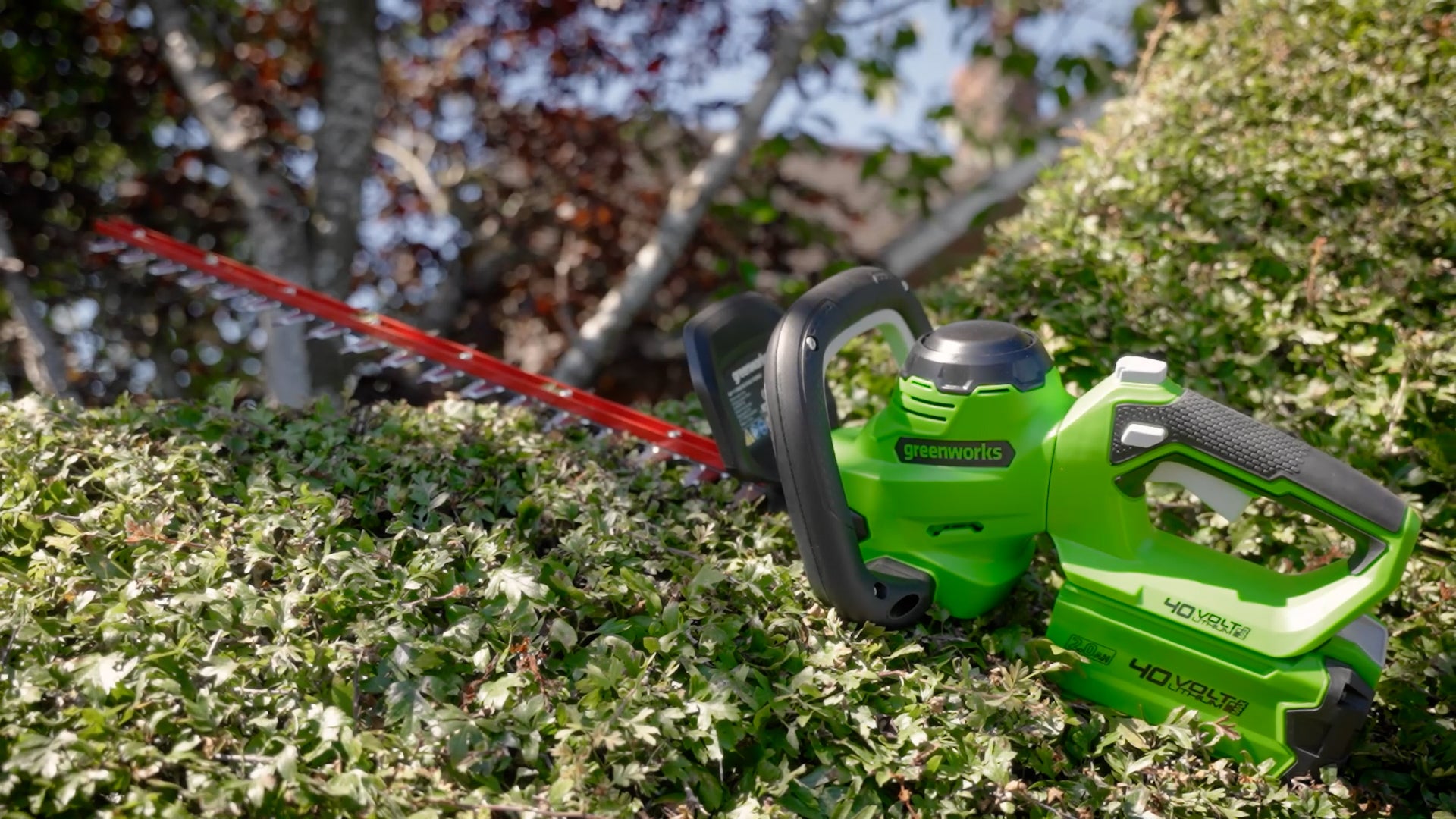 The Greenworks G40HT61 cordless hedge trimmer is perfectly suited to smaller gardens thanks to its lightweight and compact design. Power comes from an advanced 40V lithium-ion battery which combines a compact design with powerful performance.