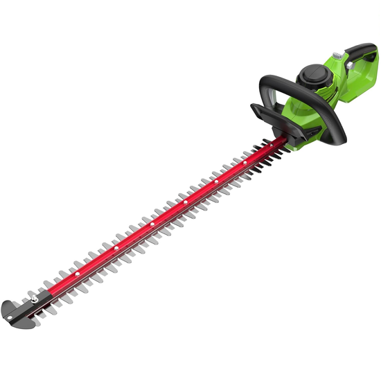 The Greenworks G24HT70 is a powerful yet lightweight 24V hedge trimmer, ideal for medium-sized hedges. With a generous 70 cm cutting length and dual-action blades operating at 3200 cuts per minute, it delivers clean, precise cuts with ease. At just 2.8 kg, it offers excellent control and comfort during extended use