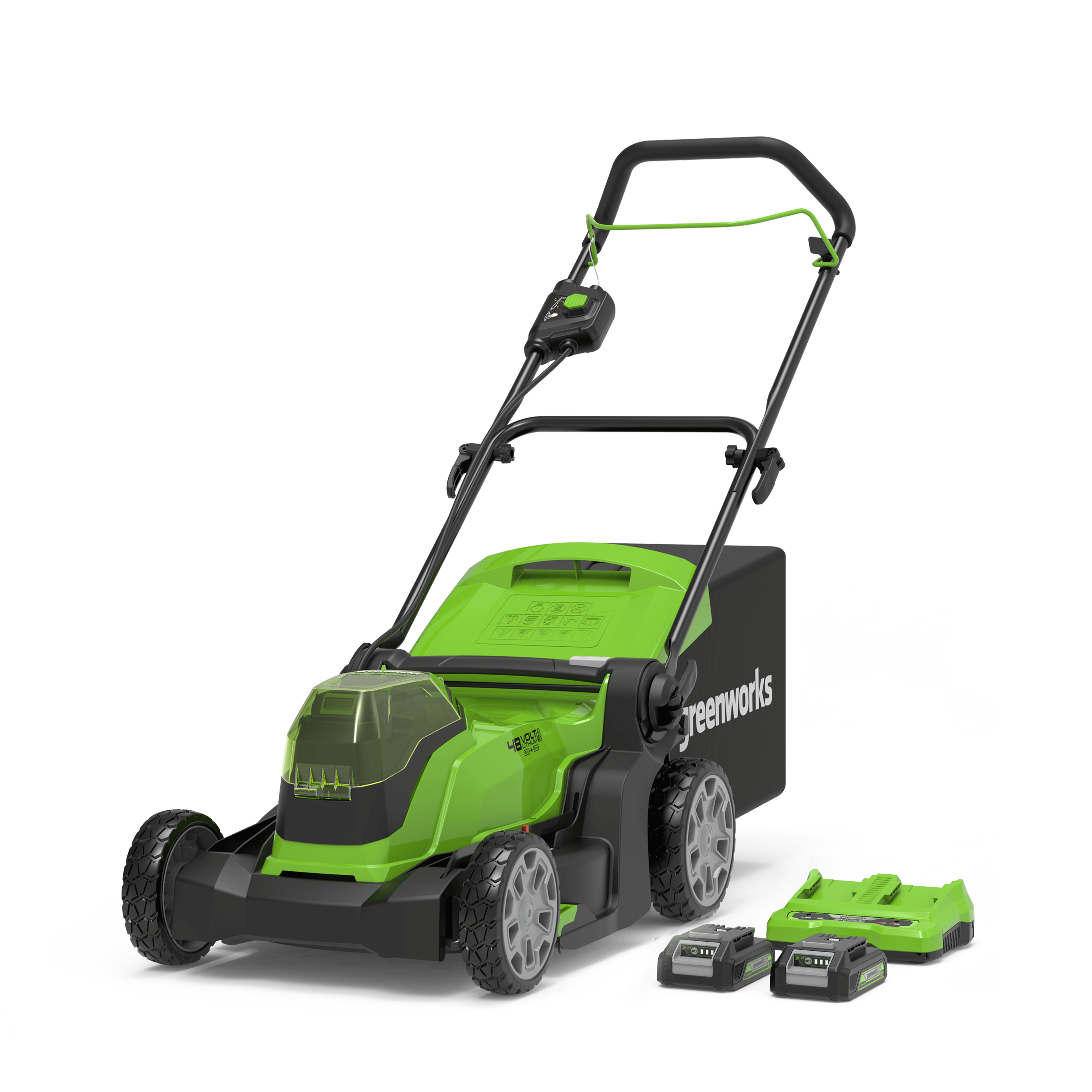 The Greenworks G24X2LM41 is a highly versatile lawnmower with a 41cm cutting width for small to medium sized lawns. Powered by an advanced dual volt system the machine offers 48V performance using 2x24V batteries, as part of the 24V family, the battery can be used in any of the other tools available, for total flexibility and convenience.