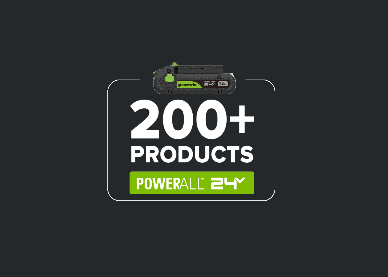 The Greenworks POWERALL 24V™ system combines 24V and 48V (24V × 2) performances within one expandable cordless platform. With over 200 compatible tools, it covers everything from garden, DIY to lifestyle and automotive solutions all powered by the same battery ecosystem.