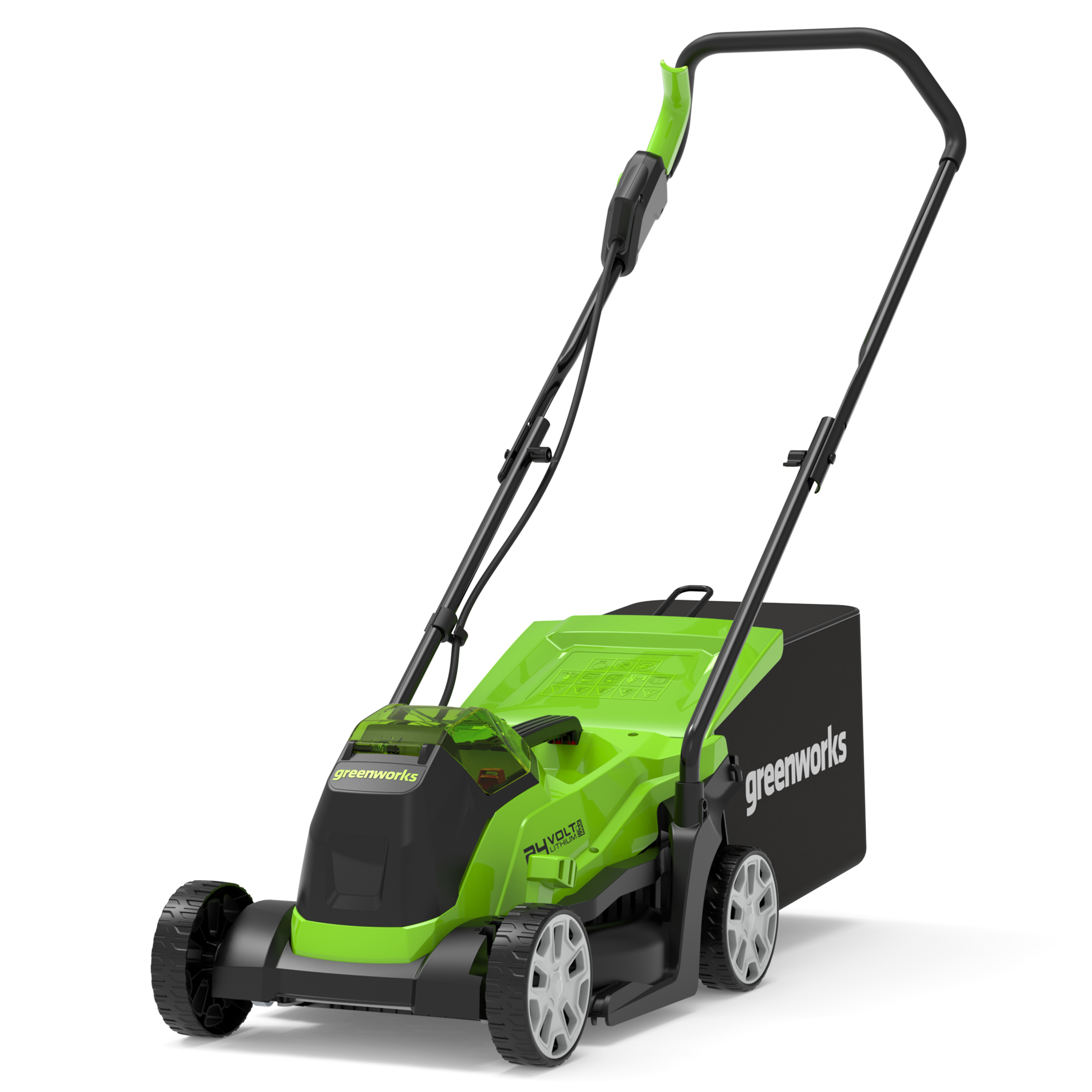 The Greenworks GD24LM33 is a highly versatile lawn mower designed for smaller lawns, up to 280 m². Powered by an advanced 24V battery that can be used in any other 24V tool. The advanced brushless motor ensures maximum efficiency, giving longer runtimes and increased performance. To make storage even easier the GD24LM33 features fully folding handles.