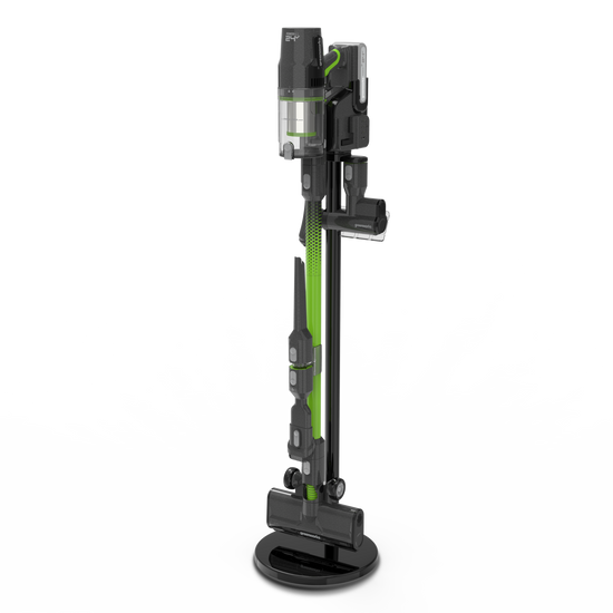The vacuum includes a sturdy stand and five easy-to-attach tools that click securely into place: a motorised brush with LED lights, a motorised pet hair tool, a crevice tool, a 2-in-1 crumb brush, and a soft brush for keyboards and delicate surfaces